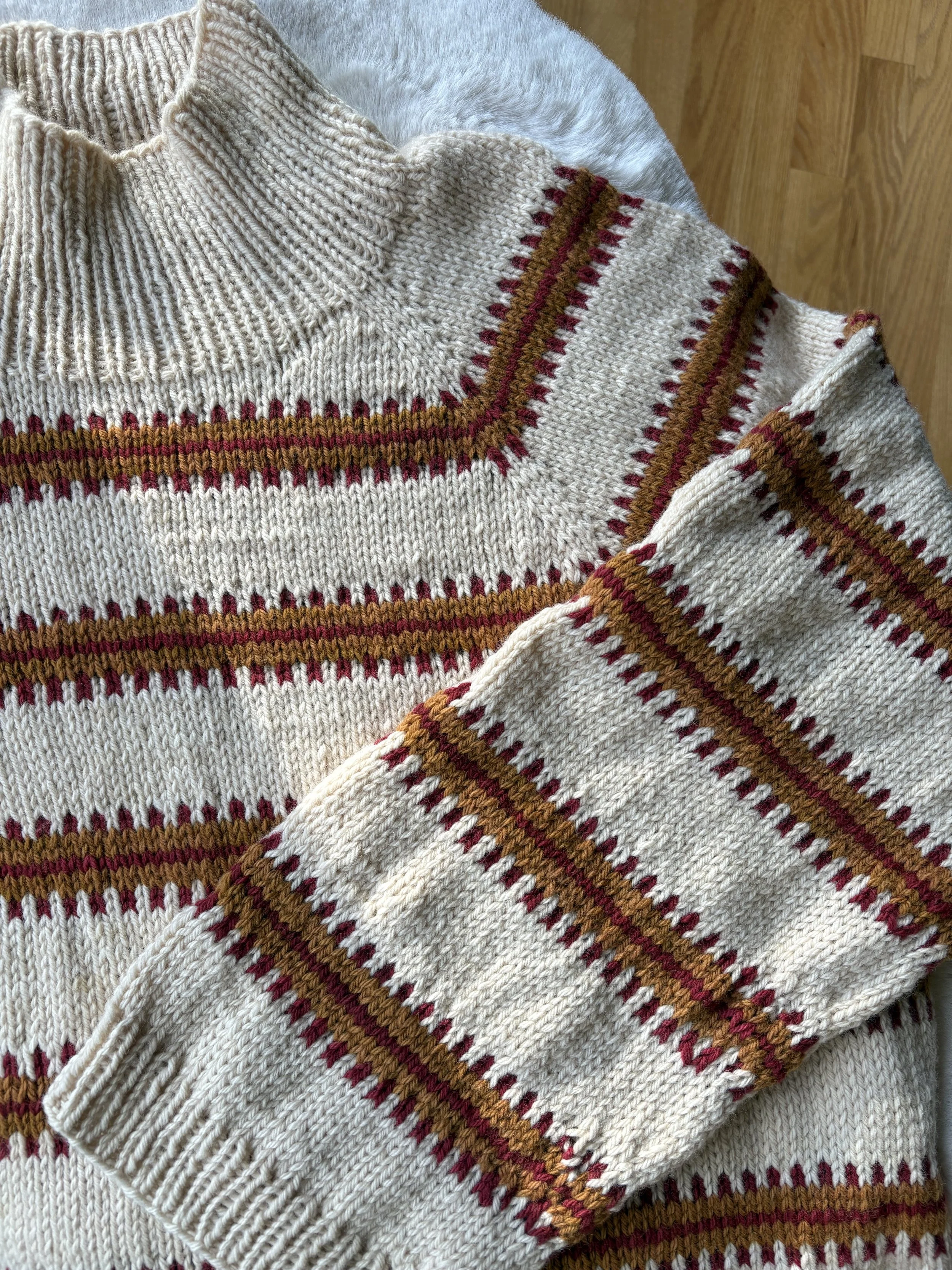 Stripes of handspun between sections of worsted